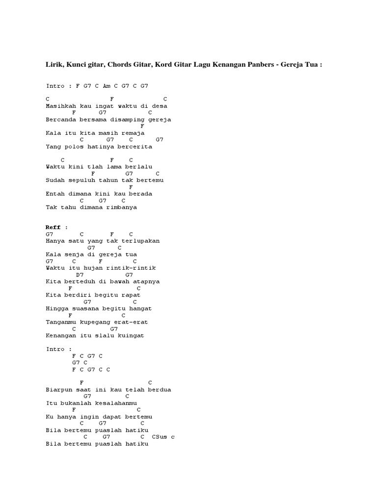 Lirik lagu kenangan kunci gitar chord panbers gereja tua c f g c am c g c f c f c f c. D7 g7 kita berteduh di bawah atapnya. C f c hanya satu yang tak terlupakan. Panbers sukses menerima sembilan piringan emas lewat single gereja tua sebagai bentuk pencapaian lagu terlaris. Lirik dan chord lagu tembang kenangan app report on mobile.