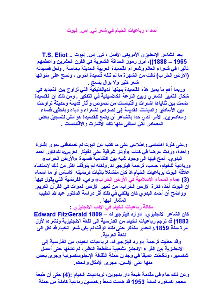 Ø±Ø¨Ø§Ø¹ÙØ§Øª Ø§ÙØ®Ùا٠أÙÙ Ø®ÙÙÙ Ø¸Ù ÙØ°Ø§ Ø§ÙØ³ØØ± ٠ا أطا٠اÙÙÙ٠ع٠را Ù ÙØ§ ÙØµØ± ÙÙ Ø§ÙØ§Ø¹Ù ار Ø·ÙÙ Ø§ÙØ³Ùر Youtube from i.ytimg.com فبينما يرى البعض هذا العمل نداءاً للاستمتاع بالحياة والاحتفال بها وقد تأثرت هذه التفسيرات بشكل كبير بالترجمات المتنوعة للمجموعة. تُعْرَض هنا مجموعة من رباعيات الخيام التي ظل تفسيرها قضية قائمة. Translations of رباعيات الخيام. english russell harris. سمعت صوتا هاتفا فى السحر. وتتألف رباعيات عمر الخيام من رباعيات يُفْتَرض أنه ناظمُها، وبمرور السنين، نُسبت إليه أكثر من 2,000 رباعية. كانت رباعيات الخيام عبارة عن مقطوعة شعرية بالفارسية، مكونة من أربعة أبيات، كان يتغنى بها في أوقات فراغه، ويقال إنها نُشرت من قبل كل من سمعها من أصدقائه وربما نُسب إليه ما لم يقله أو ربما تُرجمت المعاني من وجهات نظر مختلفة أو أضيف إليها معانٍ. النهر المتجمد في فصل الربيع. أدعمنا بالتبرع بمبلغ بسيط لنتمكن من تغطية التكاليف حياته ولد عمر الخيّام بن إبراهيم خيّامي في 18 مايو 1048 في مدينة نيسابور التي كانت إحدى المدن الرائدة في خراسان خلال العصور الوسطى.